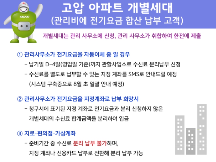 - 관리사무소에서 직접 한국전력공사에 신청해줍니다.